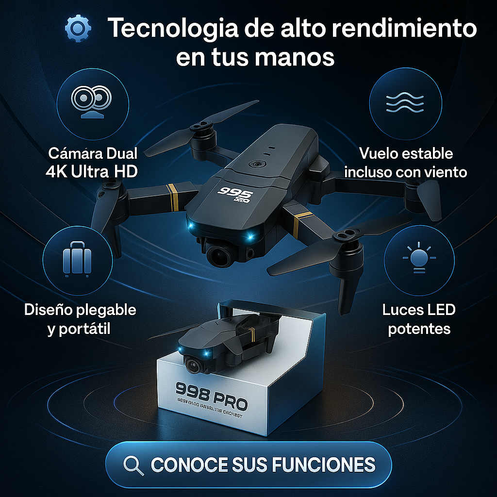 El Dron 998 Pro, gracias a su versatilidad, no es solo un juguete, sino también una herramienta para grabar eventos, apoyar proyectos ecológicos, explorar lugares inaccesibles y competir.